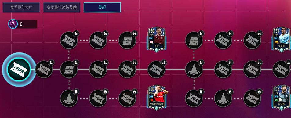 本章节最右侧还设有两项可重复兑换的节点。玩家可以消耗50点英超最佳点数,兑换一名131+英超赛季最佳入围球员;也可以消耗150点赛季最佳英超点数,兑换一名134+英超赛季最佳入围球员。