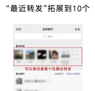 “最近转发”从原本的5个名额增加至10个,并优化了展示效果,让转发内容更加清晰直观,有效避免误发的尴尬。