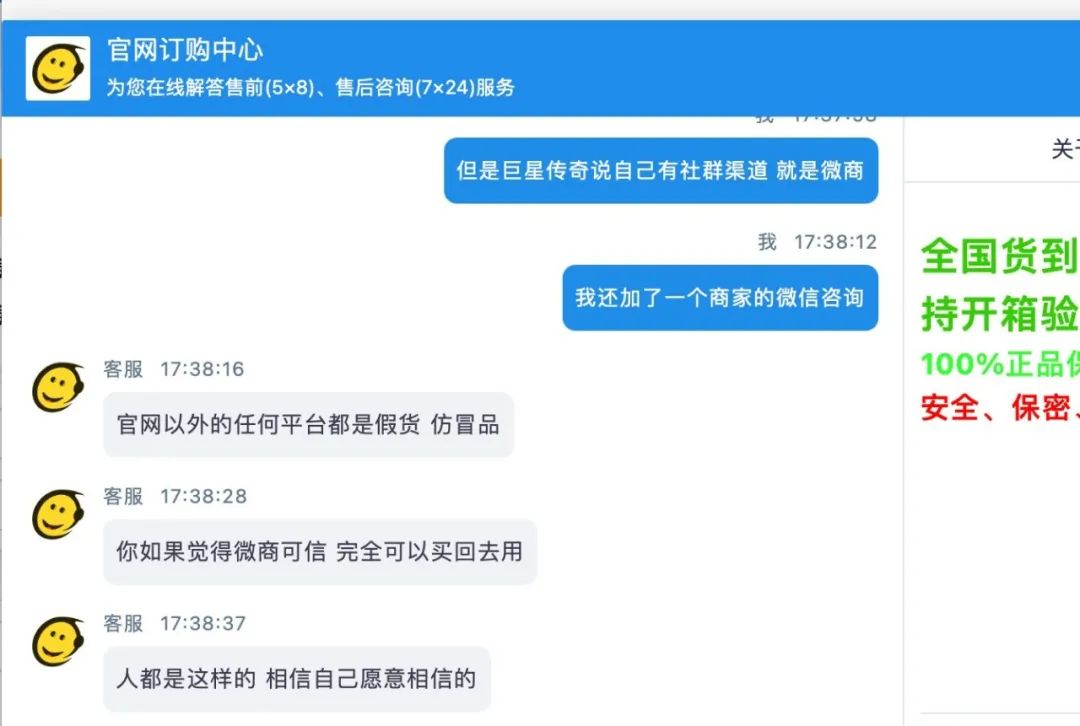 记者与官网客服对话截图