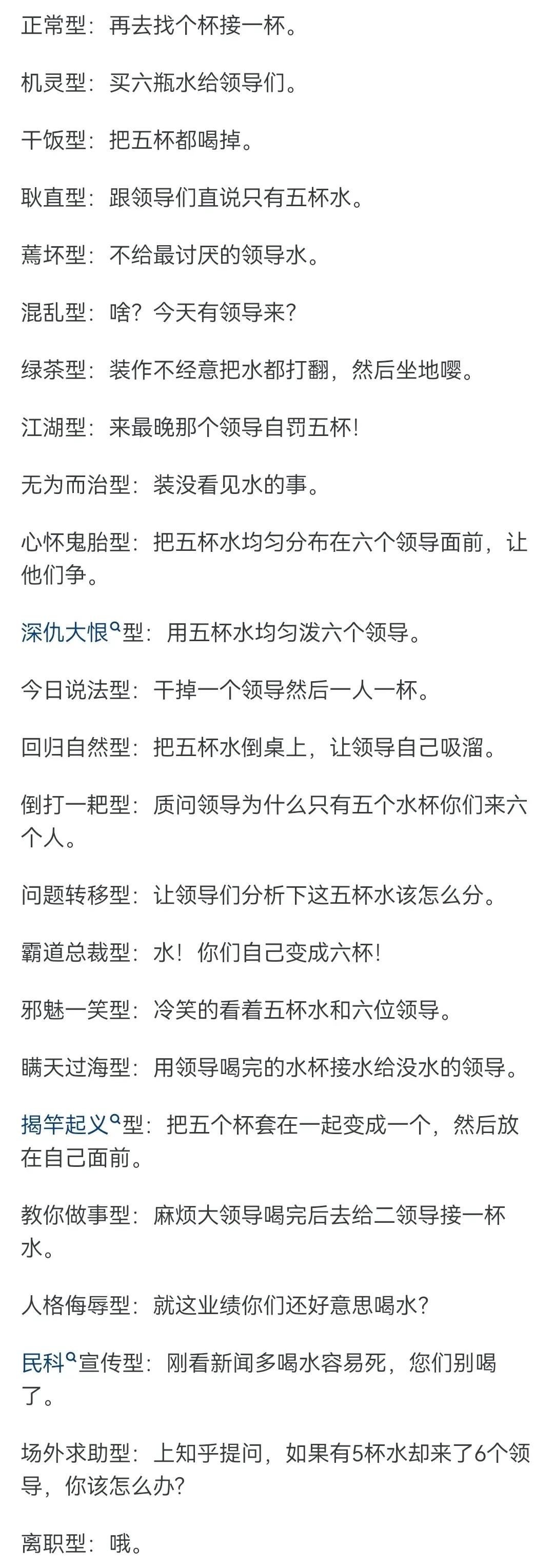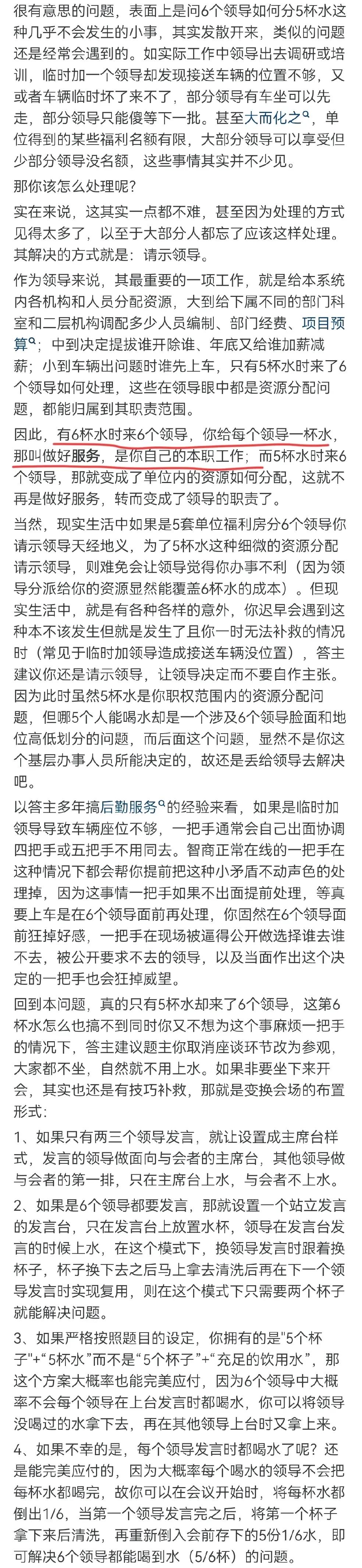 假如有 5 杯水却来了 6 个领导,你该怎么办?看完网友评论:恍然大悟
