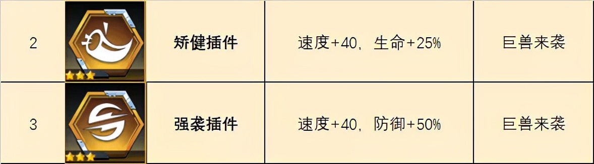 而类似的数值设定也出现在了新出的另外2个插件【矫健插件】与【强袭插件】上,所以从数值设定上来讲,新出的3个插件只比过去的双属性插件略差一丢丢,几乎可以忽略不计,那么既然数值不落下风,是否在实用性上会有所突破呢?
