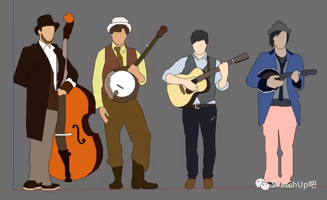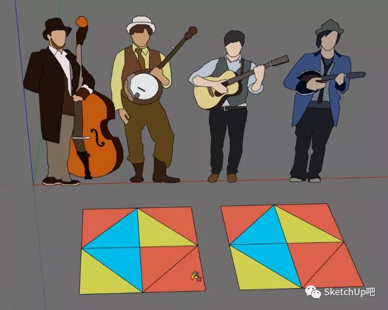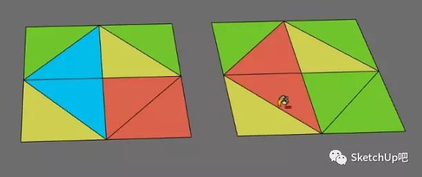 对组直接进行材质填充,进入组内点击面后在图元信息中是看不到正反面的一个材质信息。(在这样的组内进行绘制会按照选择的材质自动进行材质填充)