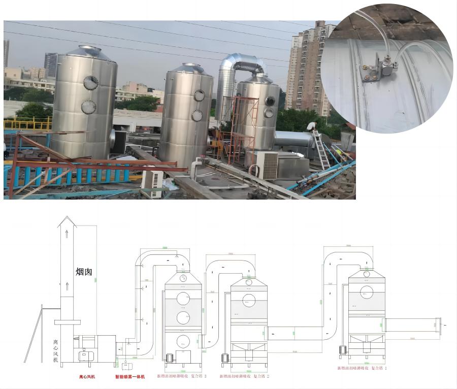 ●客户问题:喷涂车间异味浓度高,成分主要为甲苯、二甲苯、丙酮,苯系物为主的恶臭气体。原有处理工艺耗电、耗材、固废垃圾处理等运行成本较高,在有组织收集及喷淋塔处理后,效果依然不理想,引发周边居民投诉。
