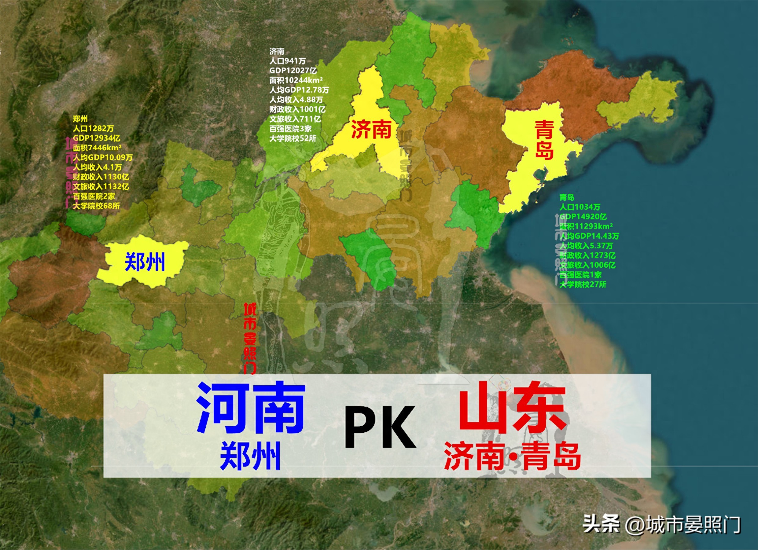 在我国十强省中,有这么两个省极其相似。它们不仅全部是人口、经济大省,而且在经济上均呈现出大而不强的特点。另外,还是我国经济大省中,仅有的两个同时兼顾农业大省作用的。而且两省虽然人口达到一亿,但在科教资源上,却明显有点囊中羞涩。说到这里,相信很多人已经知道这两省便是万众期待的“山河大学”中的山东、河南了。本文,我们便通过20项核心数据来详细聊聊象征两省城市天花板的3座GDP万亿级城市。看看地级省会郑州,相比于沿海的副省级城市济南、青岛都有哪些优劣势?以及综合实力上的孰强孰弱?谁才是实至名归的山河两省第一城?