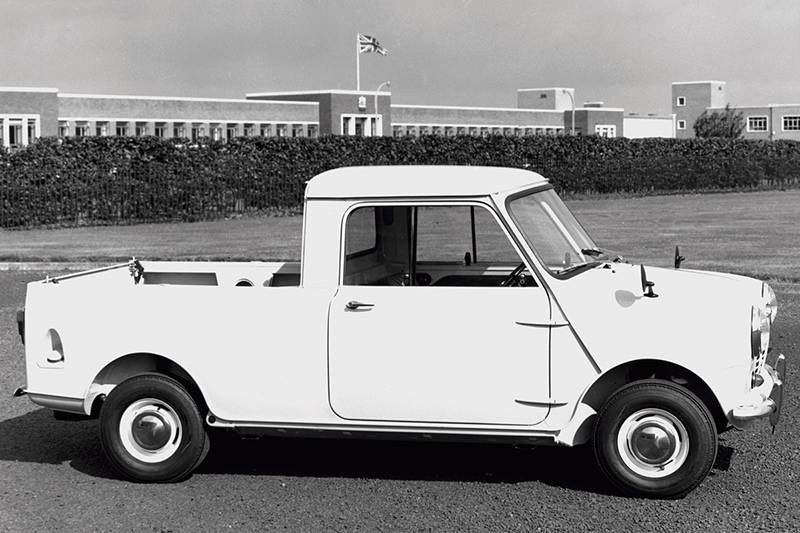 既然有MINI Van此商用取向车款,当然也少不了同样是商用兄弟的皮卡车型。 1961年问世的MINI Pick-up,为求后货斗更佳的乘载容积,特别将车身长度拉长至3.4米之水平,除了前排座椅维持一般座舱设计以外,后排座椅则改为开放式的货斗设计。与MINI Van相同,MINI Pick-up也仅生产至1982年便走入历史。