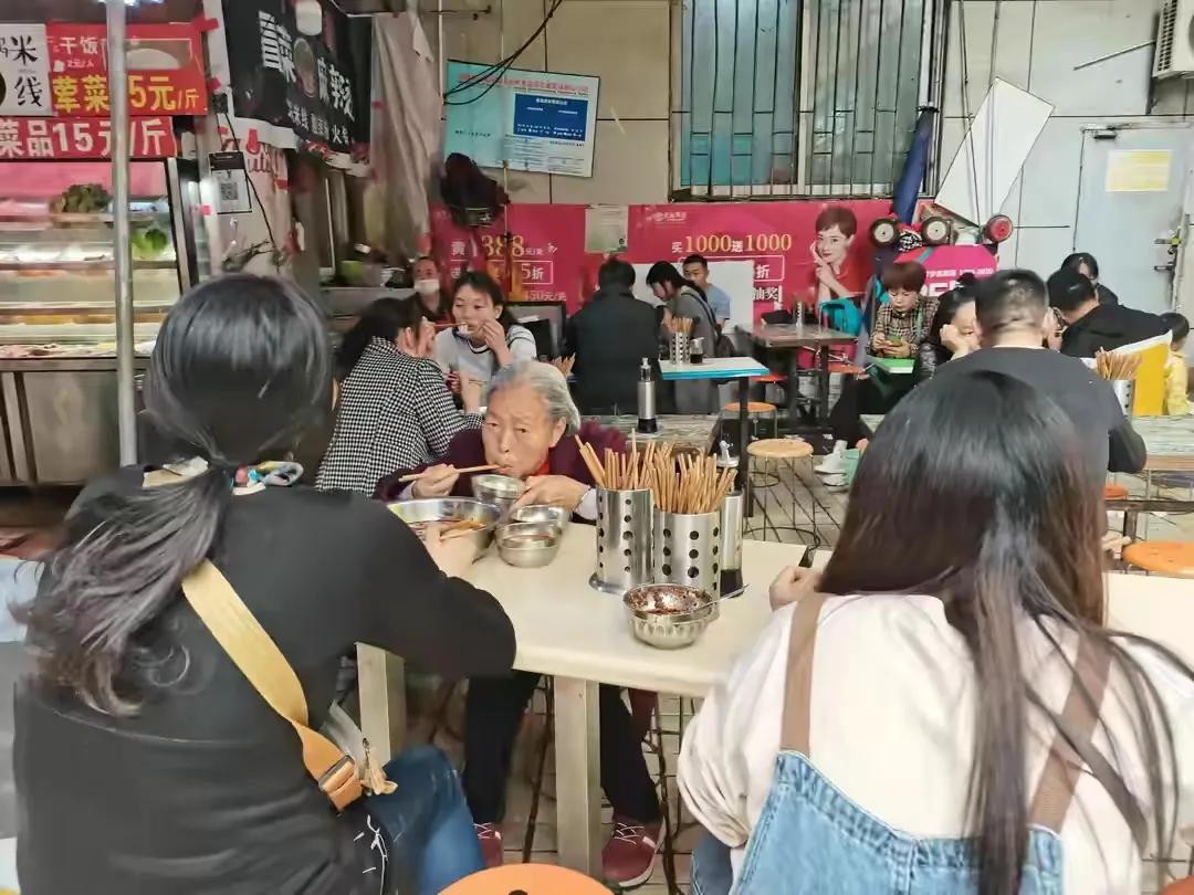 我想吃点米粉,一看店外面摆着麻将桌,旁边还围着一大群人在指点江山,我还以为饭店生意不做了,走近一看,里面居然有吃饭的。