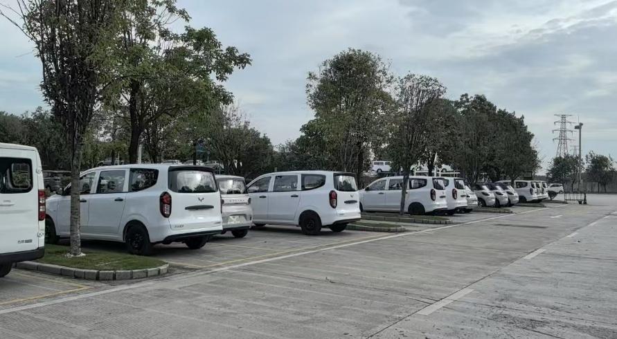 整个下午,服务区内车辆运输车往来频繁,累计卸下近百辆商品车。下午3点半左右,一辆收起“翅膀”的“飞机板”缓缓驶入停车场,其车身长度在停车场内格外显眼。经丈量测算,该车全长超过40米,是场内最长的货运车辆。