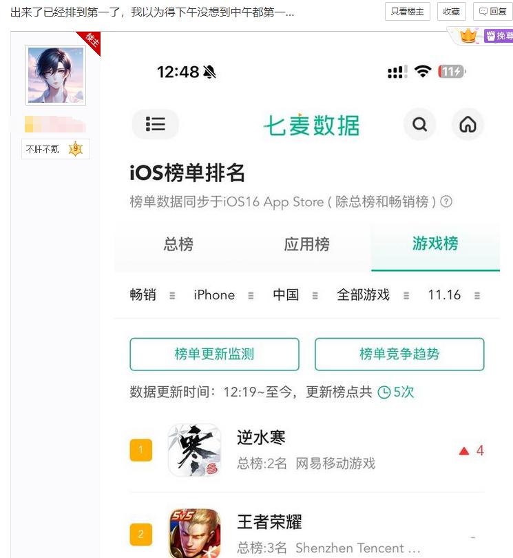 尤其是看到它在畅销榜上超过《王者荣耀》的时候,是真的会让游戏玩家们惊叹:他真的创造了历史,改写了这些年的手游格局!