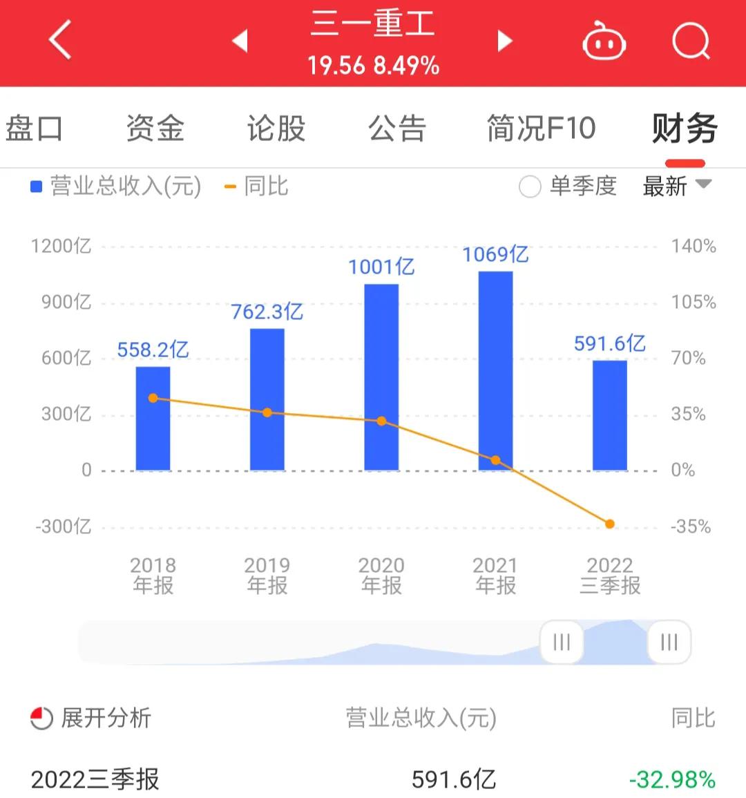 三一重工2022年前三季度的营收是591.6亿元。