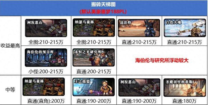 普通地下城是110级版本的搬砖地图,搬砖收益大致如下表,影响收益的波动因素有:评分、无色价格。