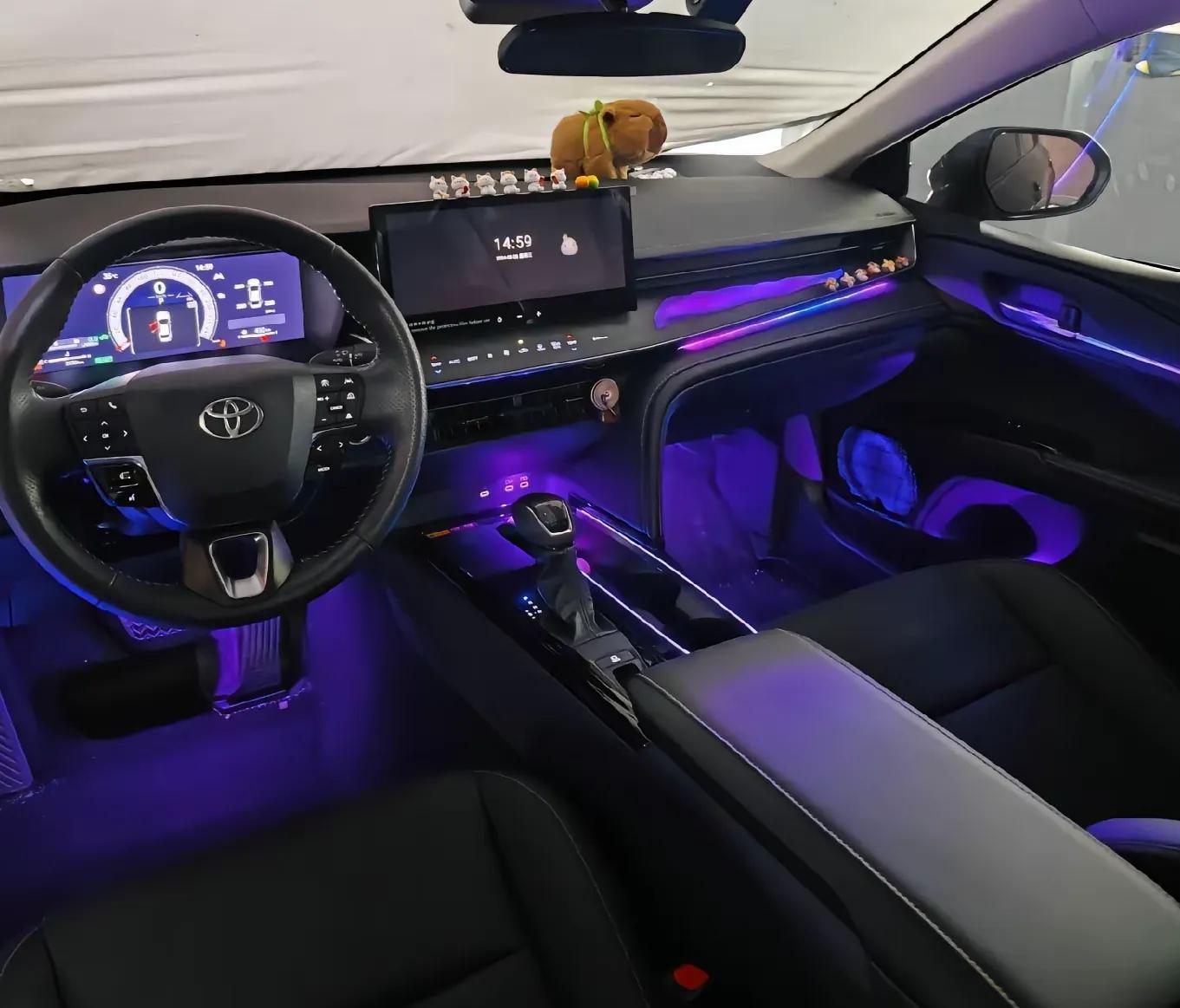 凯美瑞:内饰采用非对称设计,整体呈现年轻感,配备8英寸中控屏,设计常规,部分车型配备抬头显示和10.1英寸导航中控屏,其方向盘与亚洲龙手感及人体工程学差异不大.