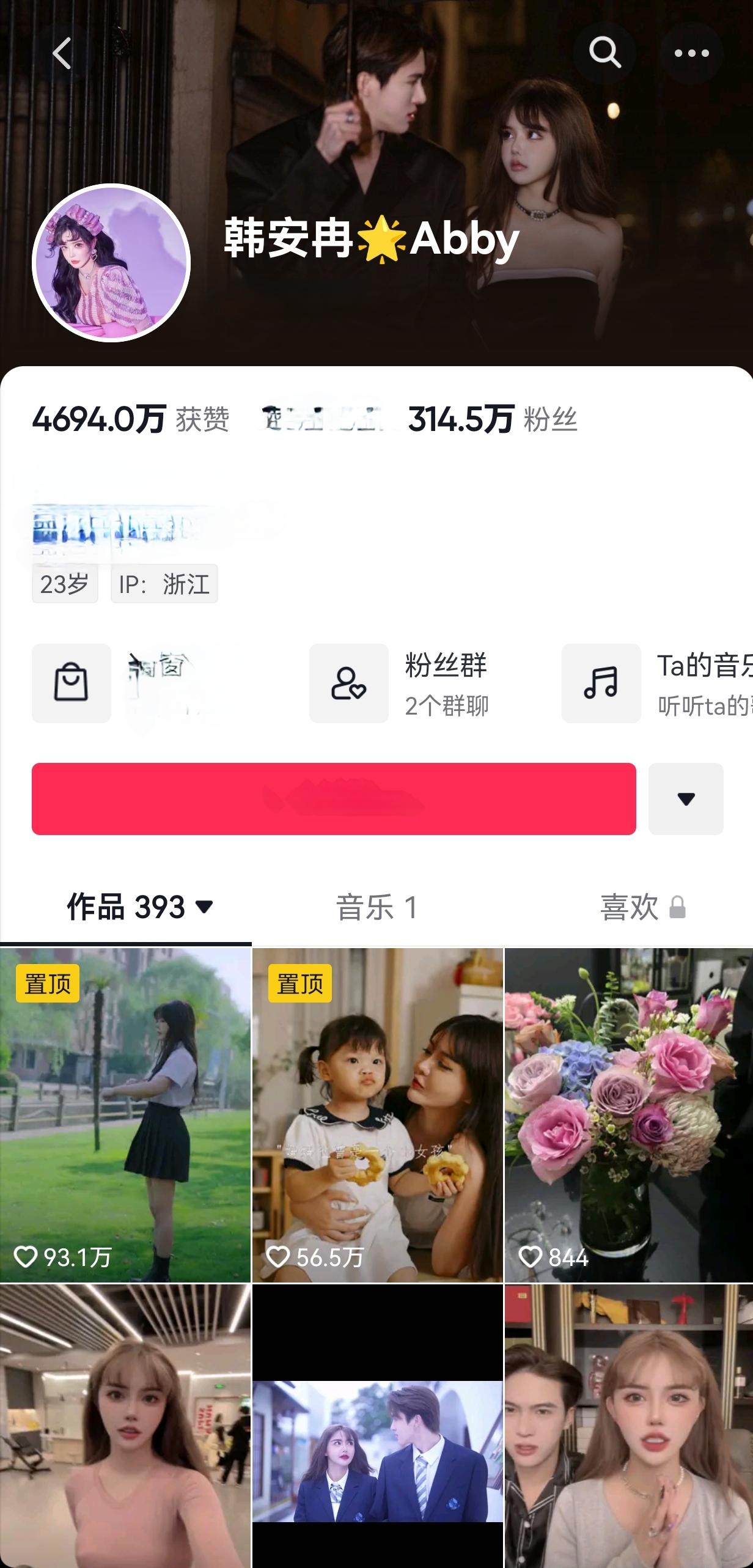 韩安冉的抖音账号