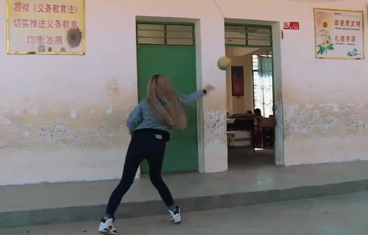 韩安冉将球扔进教室