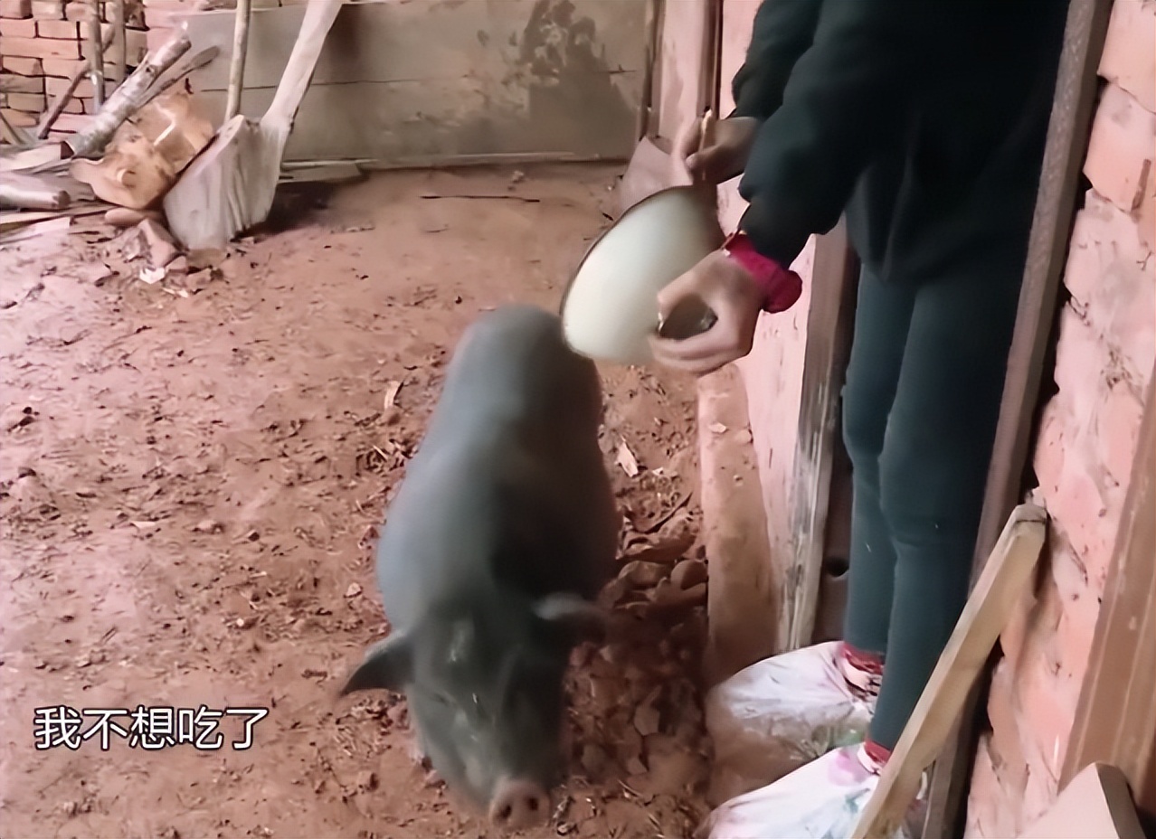 韩安冉将米饭倒给猪