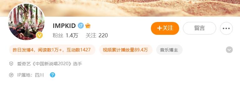 点开P-Kid的微博主页,会发现他只有1.4万的粉丝数,和姜云升的274.2万比起来属于是零头都不到。P-Kid的认证简介是“《中国新说唱2020》选手”,但实际上他在《中国新说唱2020》只通过了体育馆海选,在第一轮就被淘汰了,而那年大部分选手的第一轮表现都没放在正片里,所以他在节目中可以说是没有任何存在感。