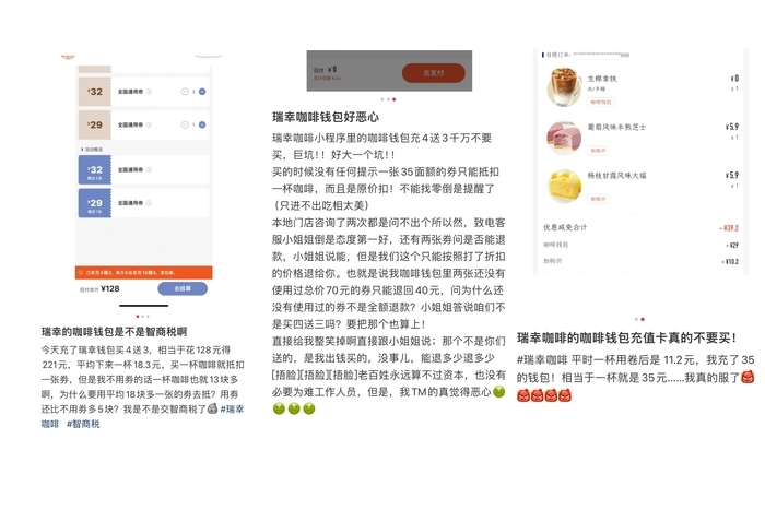 不少消费者也发现了类似问题并在社交平台吐槽,称瑞幸推出这项优惠活动就是“稳赚的买卖”,不设找零、超额补差价的使用规则更是激起消费者的热议不满,纷纷要求官方退款。
