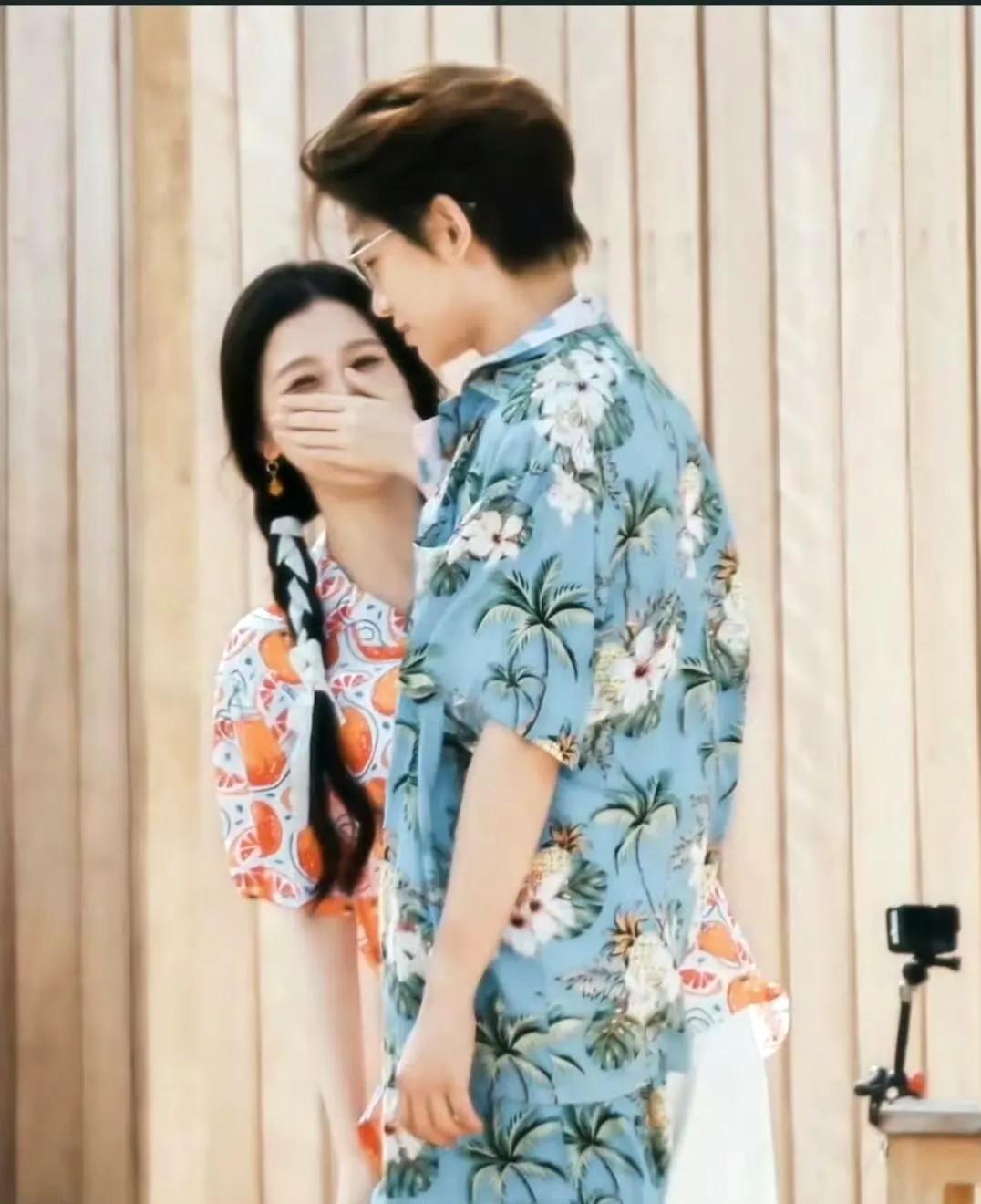 11月18日路透图中二人穿海岛服互动甜蜜,还被拍到携手演绎双人大片 ,有路透照显示丁禹兮在沙滩上戴墨镜开越野车。