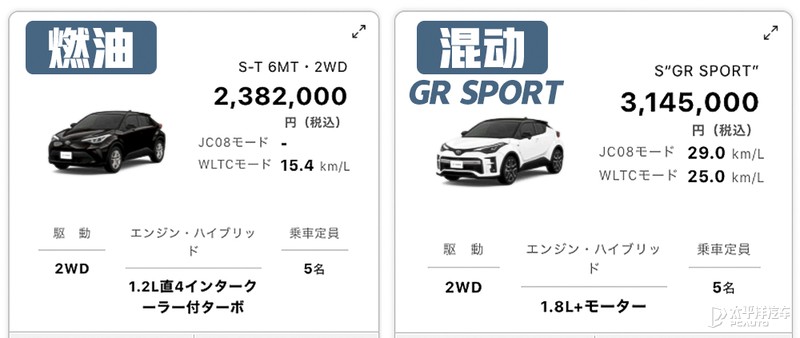 (日本C-HR价格范围:折合人民币13.38-17.66万元)