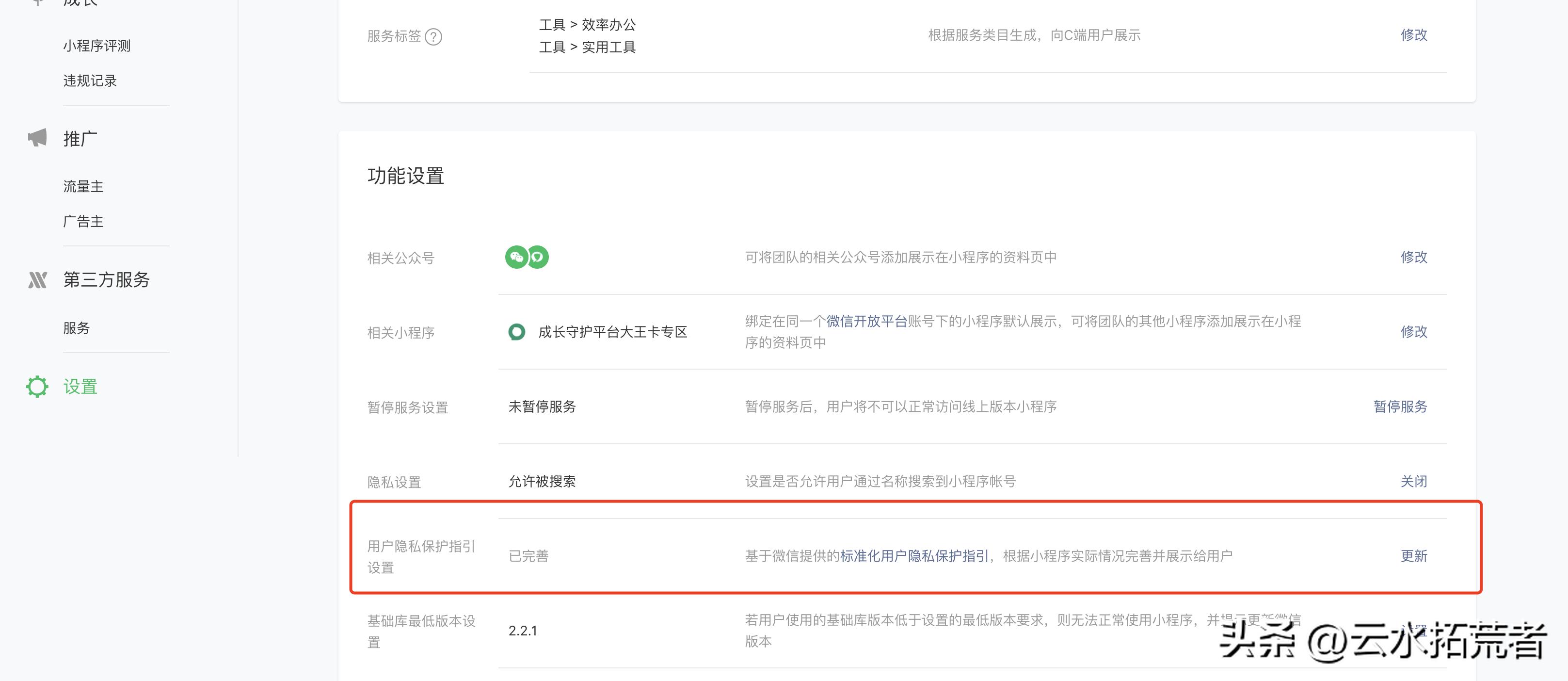 不知道大家有没有注意到微信小程序对于隐私协议有限制了。具体是这样子: