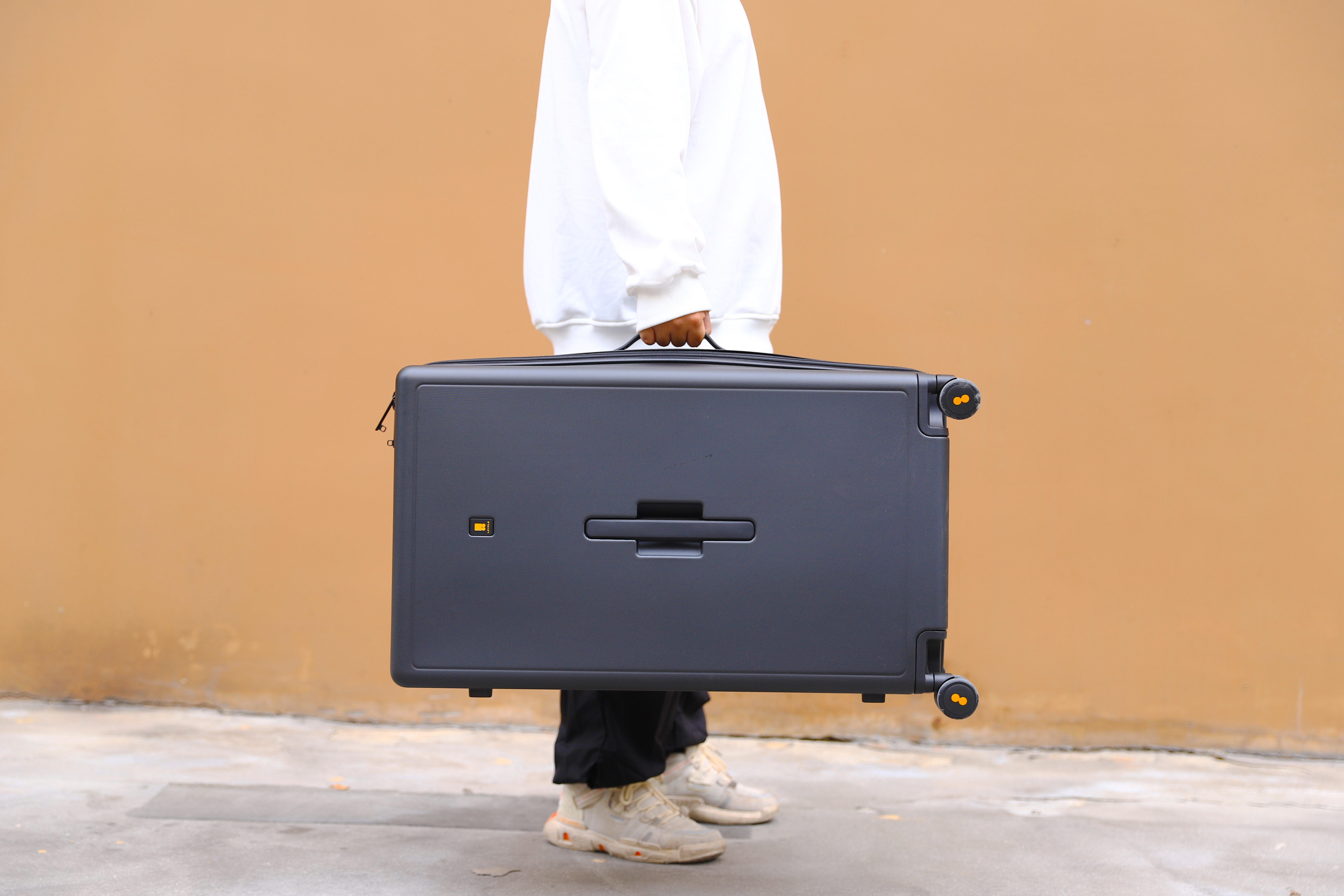 地平线8号大旅行家在箱包领域算得上是一个大容量的存在,笔者之所以选择这款28寸的大旅行箱,主要是因为时长出差,携带的东西又一大堆,方便收纳,而且也被其颜值吸引了;外观设计简洁大方,这款大旅行家总共有4个色系,笔者这款是黑色系的,没有传统旅行箱的线条设计,也打破了传统的设计局限,很有新鲜感。