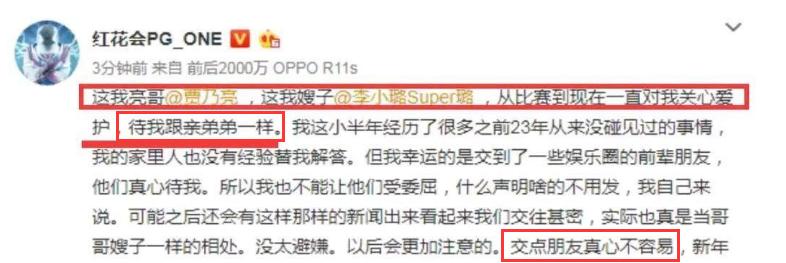 毕竟当年贾乃亮对PG One的好是大家有目共睹的。