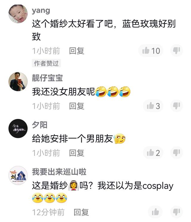 看到女生单身婚纱照的成片,很多网友也不淡定了,有人在评价大片本身,还有人在自我推荐。