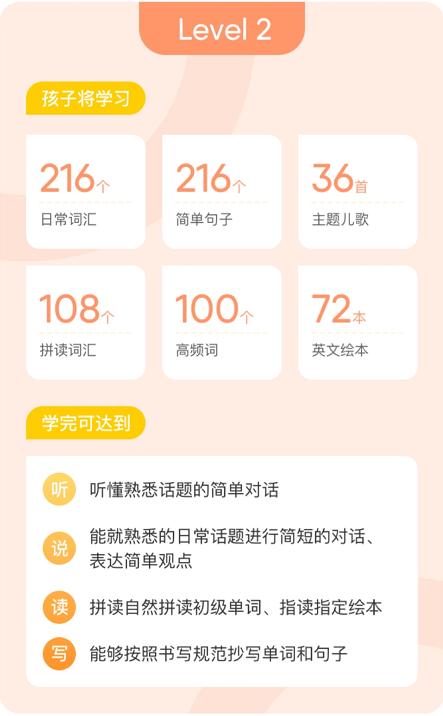 虽然一共有5个级别,但目前只研发了L1和L2的课程。适合零基础或者学习英语1年左右的孩子。