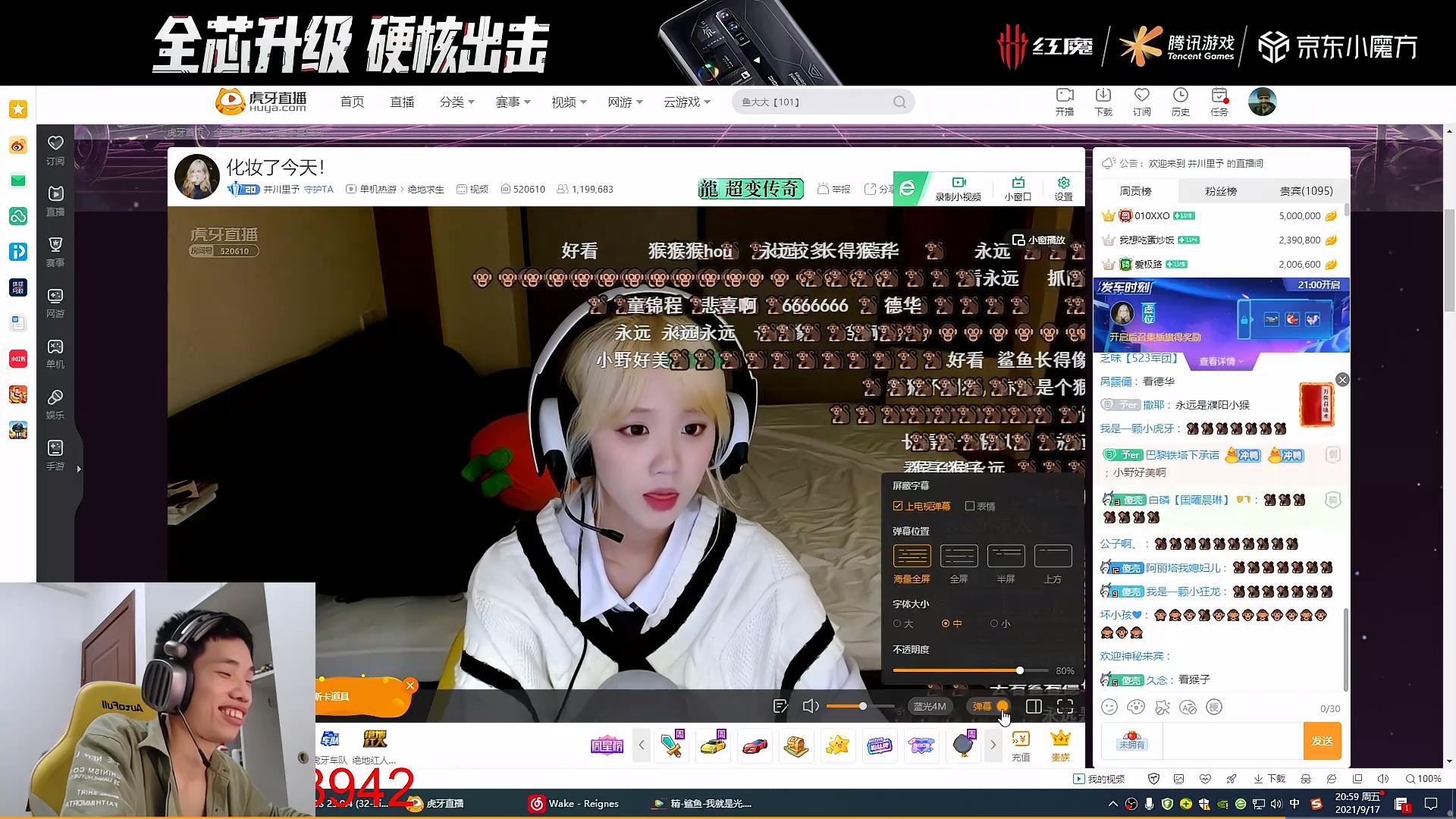 这一波一来一回直播间的弹幕就直接爆炸了,从鲨鱼直播间空降过来的粉丝也是满屏幕的刷猴子这个表情,节目效果满满。甚至有直播间的水友在川井里予的直播间带起了节奏,整个直播间的氛围是十分到位的。