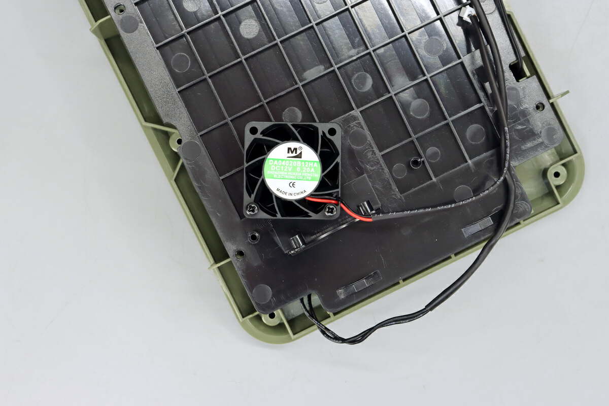 散热风扇使用螺丝固定在塑料板上。