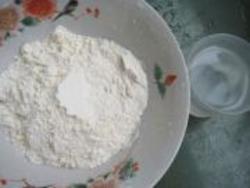 2.面粉加水,2克盐,搅成絮状。