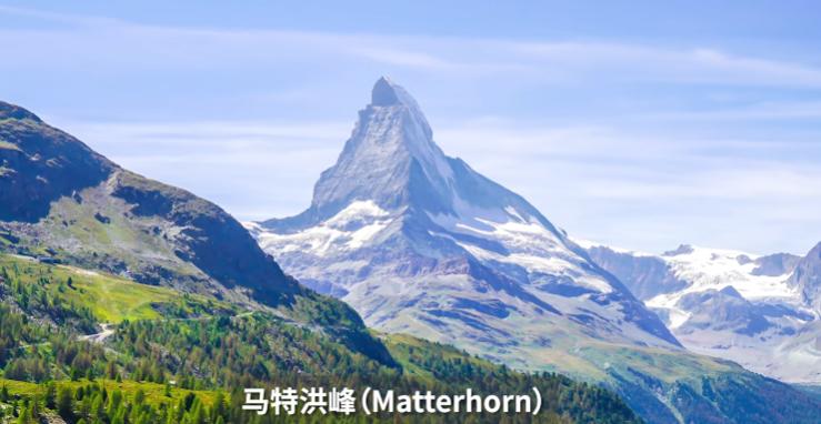 除了葱郁的自然景色,蒙德还有雄伟的龙脊雪山,它的原型是阿尔卑斯山脉的马特洪峰,这座峰位于瑞士意大利的边境,是一个四面环水的尖锥体山峰,每个面都异常陡峭。
