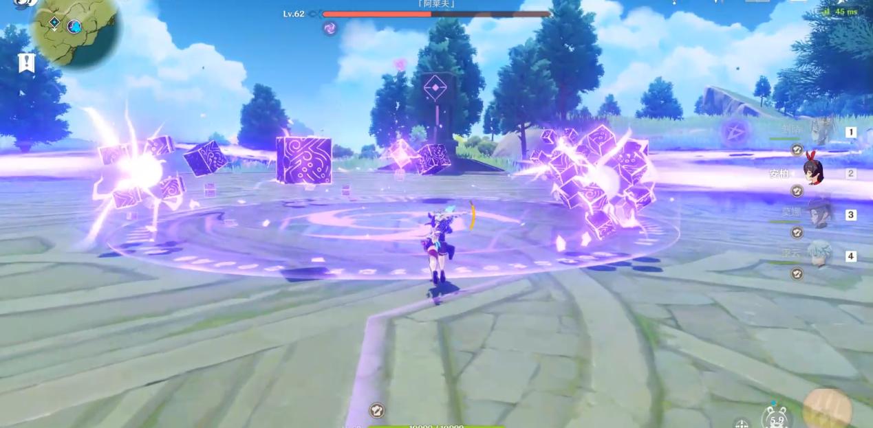 当BOSS释放【激光阵】、【落雷阵】的时候核心将会长时间暴露在外,如此一来我们便可寻其空挡来进行输出。其他技能如【剪刀石头布】、【拍掌】等,玩家可用无敌帧来进行躲避,总体难度适中。当【无相之雷】处于濒死阶段的时候,它将向四周释放三枚棱镜,玩家使用安柏对其一一击破即可(时间充足)。