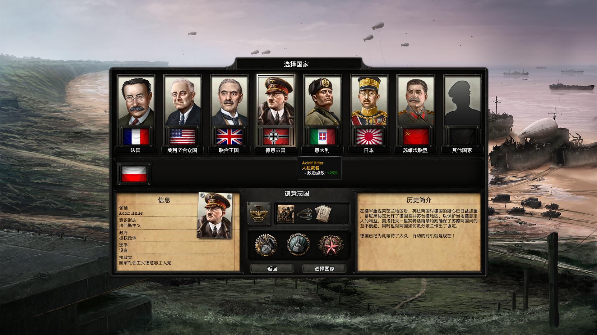 为了尽可能还原历史,选择1939年剧本,常规难度,历史国策。
