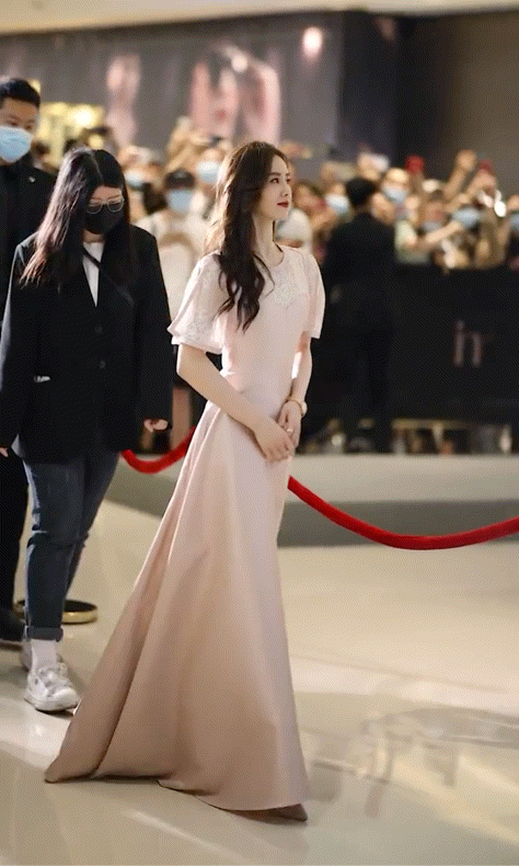 这样大步流星的走姿带动了长长的裙子,一整个落落大方的感觉,太飘逸了。连背影都透露着高贵优雅的气质。