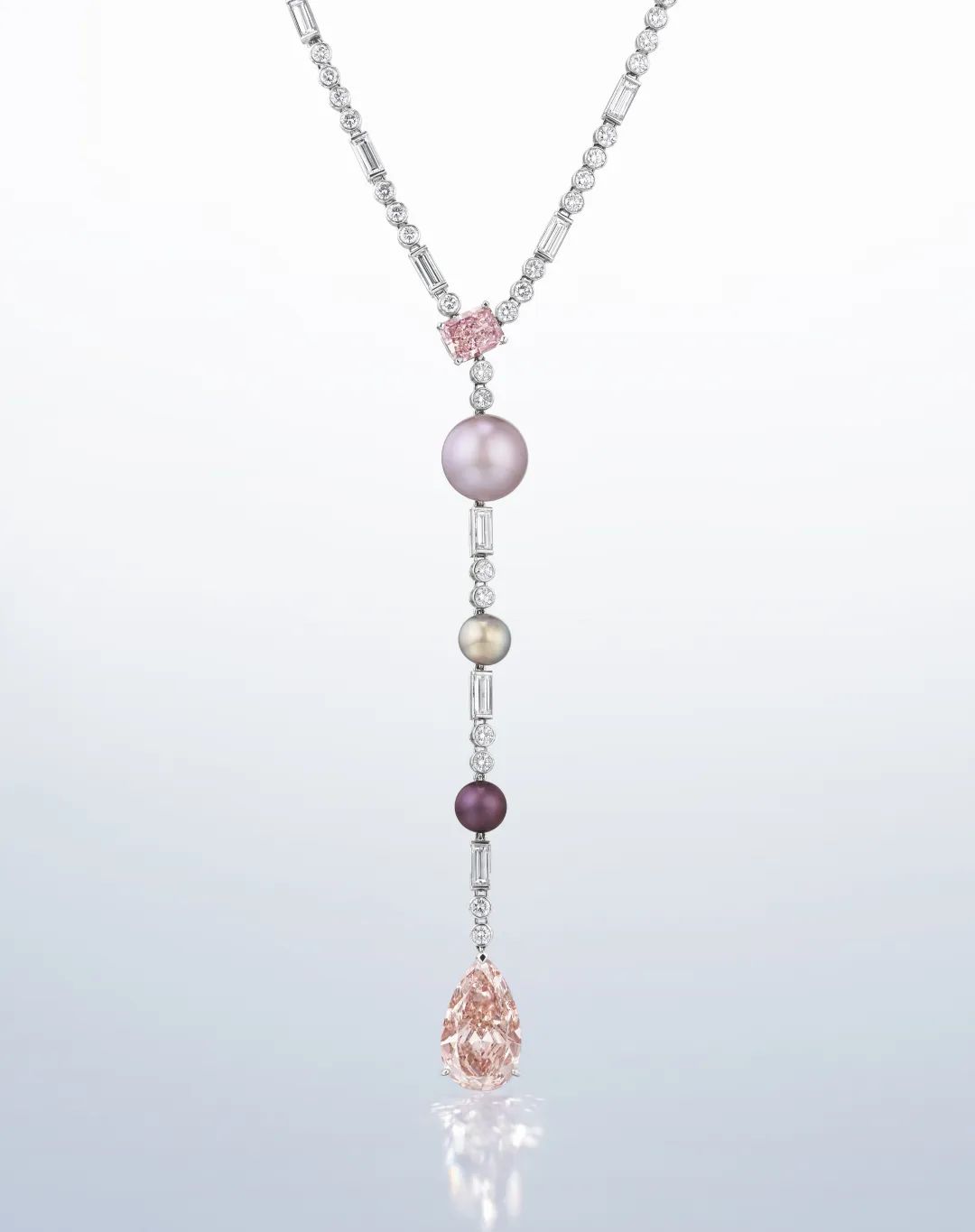 这条卡地亚设计的彩钻及天然珍珠吊坠项链,就让范主眼前一亮,精致的珍珠和钻石碰撞出绝妙火花,估价1200万-1800万港元。