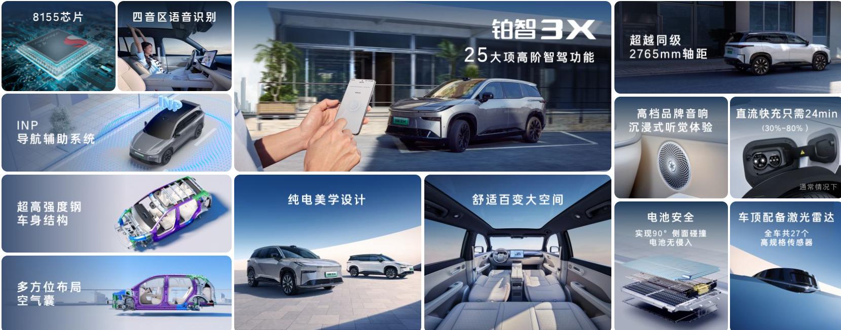 - 被动安全:72%高强度钢车身、7安全气囊(含前排中间气囊),电池包采用全方位防护设计。