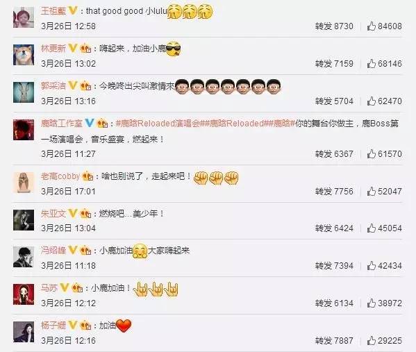 小鹿的人气真是top级别的!另外鹿晗Reloaded演唱会将于4月2日、9日登陆广州和上海。准备好再次嗨翻全场了吗?