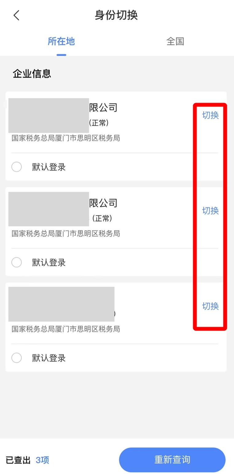 选择需登录的企业身份,点击【切换】。若您就职的企业较多,可以通过上方的搜索框搜索。