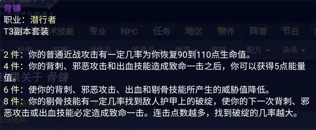 盗贼T3套中,2件、4件的套装效果都非常不错,4件套的暴击回能可以媲美T0.5的回能效果,2件套的回血能力在NAXX中也非常关键,所以无论是什么贼,T3四件套的优先级非常高。
