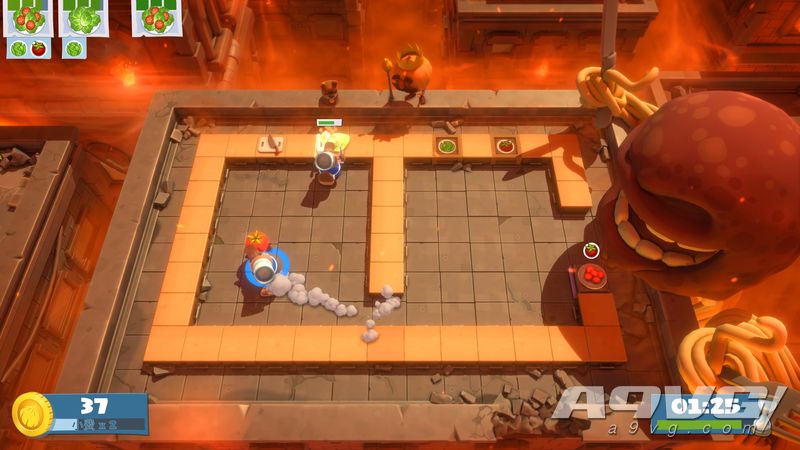 作为一个比较“内核”的要素,传统的单人模式也依旧得到了保留。和以往一样,玩家可以通过一人分饰两角的方式通过两个角色之间的切换完成所制定的菜品,难度设定上,单人体验无论是要求的三星分数还是需求的时间上都会做出一定的让步,以便可以让玩家即使一个人也可以顺利地完成游戏。而且若单纯以全三星的角度来看,可能单人的难度确实会比多人简单很多,只是在娱乐性以及欢乐程度上,却远不及多人模式里那种“尔虞我诈”的体验氛围。作为一款聚会题材的作品,可能《胡闹厨房》还是多人一起才会更加愉快,而如果是以最后的白金全成就为目的的话,单人可能会更容易一些。