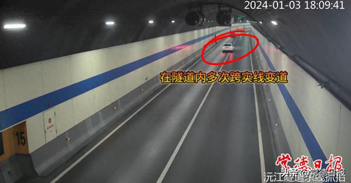 小车在隧道内压实线变道 (图片由鼎城交警大队提供)
