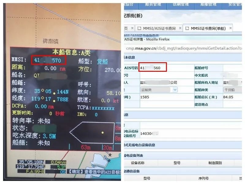 8月21日,海事执法人员对辖区某轮进行检查,发现该轮一切都如同正常完美的样子,船舶AIS显示船名与实际一致,“九位码”编码方式也没什么异常,但是,为了以防万一,执法人员还是在系统查询了该轮的MMSI码,这一查不要紧,两个码竟然对不上!单从尾号来看,一个是460,一个是470,差点就逃过了海事蜀黍的火眼金睛。经调查,该轮近期维修和更换了AIS设备,维保人员仅修改了船名,未按照标识码证书修改MMSI码,属于擅自编制使用无线电台识别码。海事部门对该轮立案调查,并责令船东立即修改为船舶核准的标识码。该轮将为自己“想改就改”的行为缴纳1000-10000元罚款。