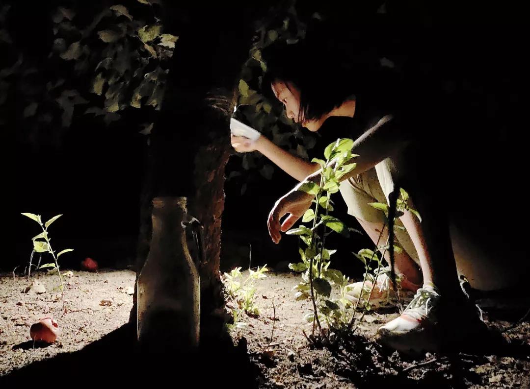 大家打着手电筒专注地清点着蝉蛹