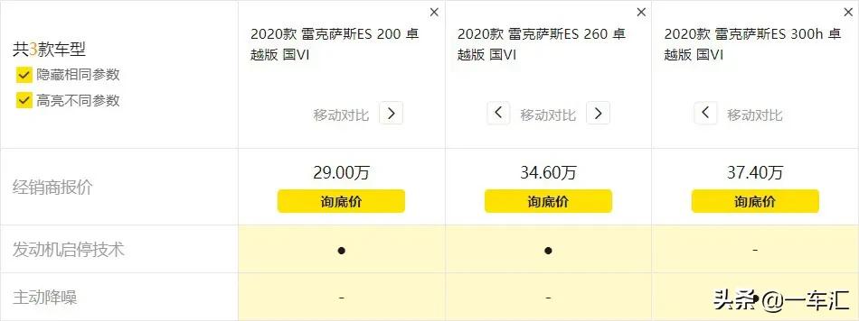 2020款 雷克萨斯ES 300h 卓越版 ,厂商指导价:37.40万元。