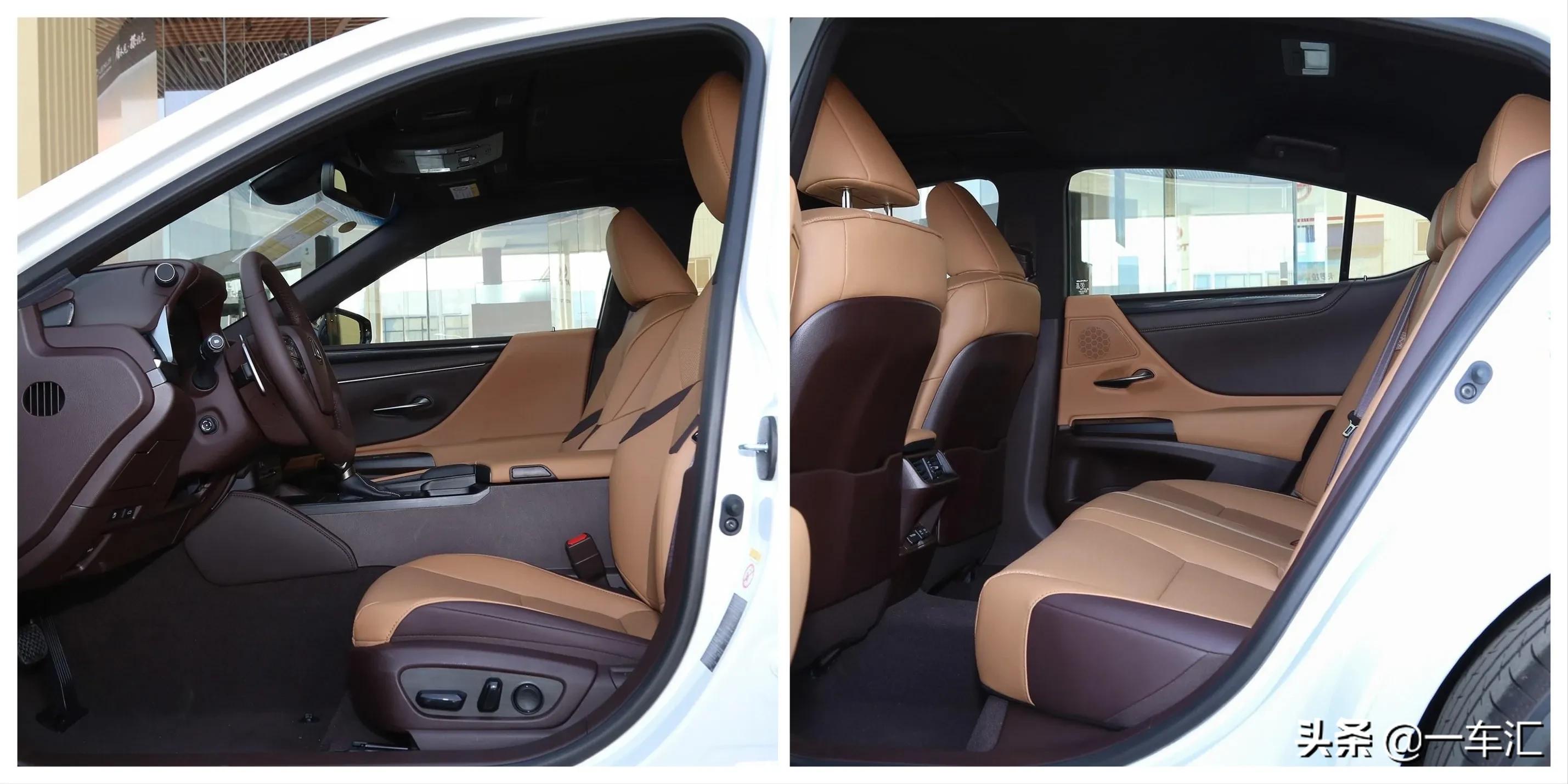 ES 300h 尊享版一定程度上可以看做是ES 260尊享版的混动版本,不过配置上相比后者再多出真皮座椅和前排腿托调节,但缺少了可开启式全景天窗,整体表现已能够应付该类车型的绝大部分用车场景。