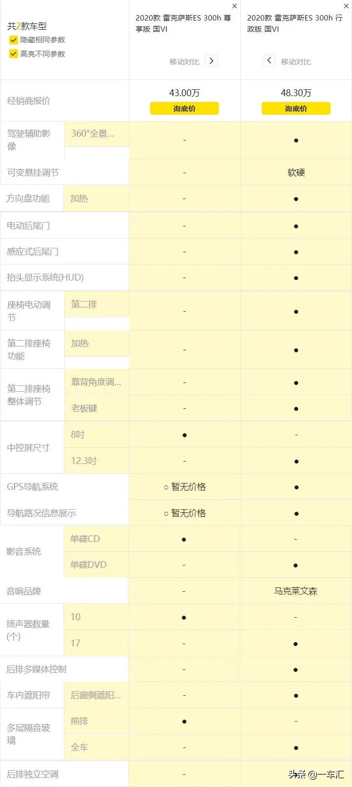2020款 雷克萨斯ES 300h 行政版,厂商指导价:48.30万元。