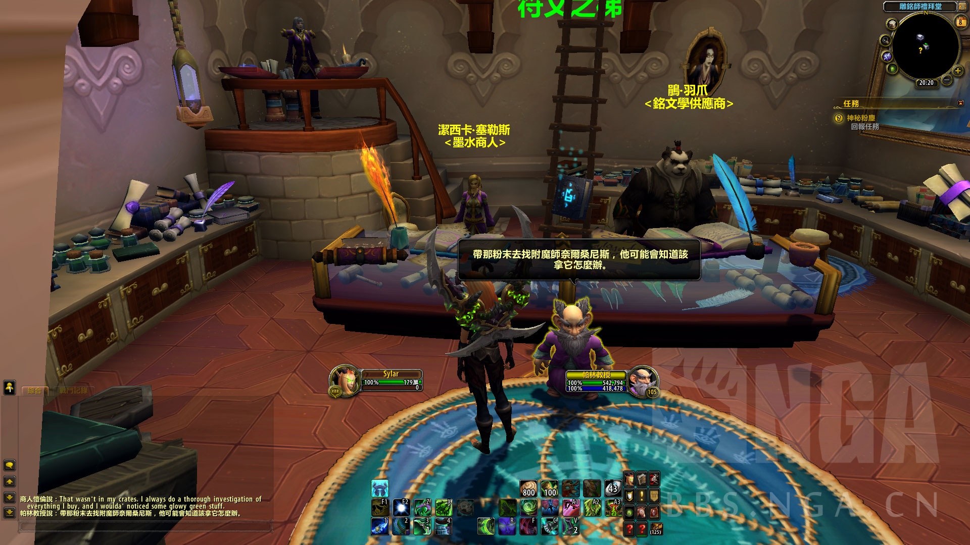 随后去询问铭文训练师柏林教授,而他也不知道这是什么,让我去找附魔训练师奈尔桑尼斯