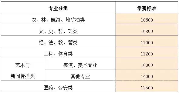 三本学校学费标准表