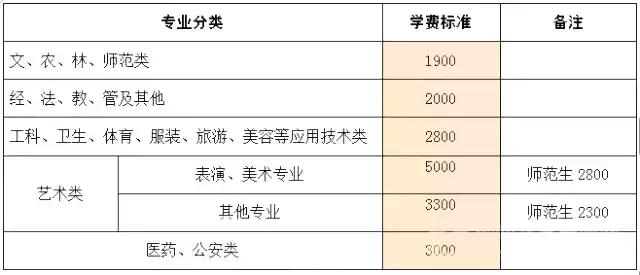 高职专科学校学费标准表