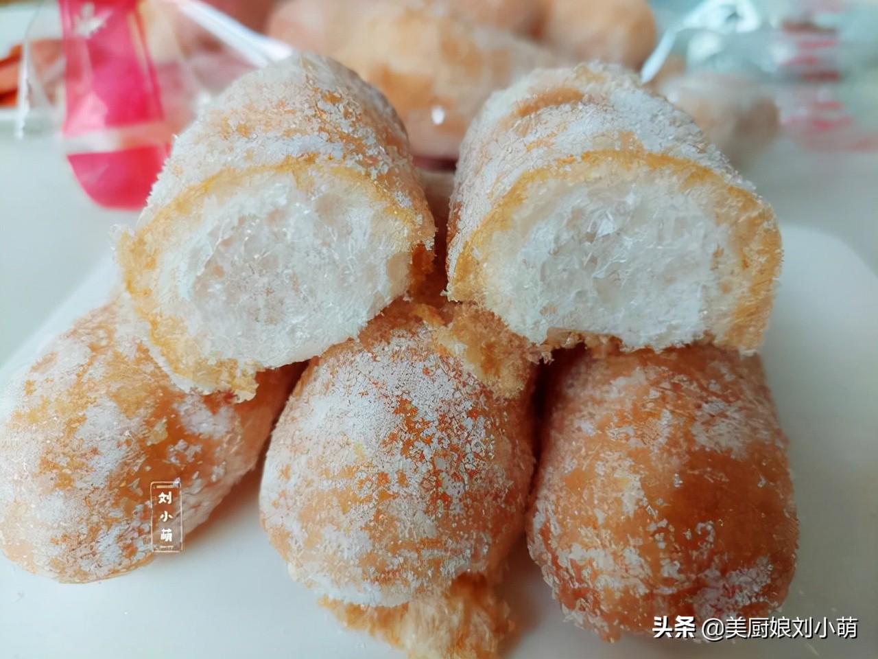小时候我们管它叫liaohuo,圆柱形的,外面沾满了白糖,里面是白色空心的,有很多洞。每到庙会的时候肯定会见到它,一般都是和其他的点心混装,放在红色的长方形盒子里,那时候开盒子就跟现在拆盲盒差不多,因为你不知道别人在盒子里装了什么点心,有没有自己喜欢吃的。
